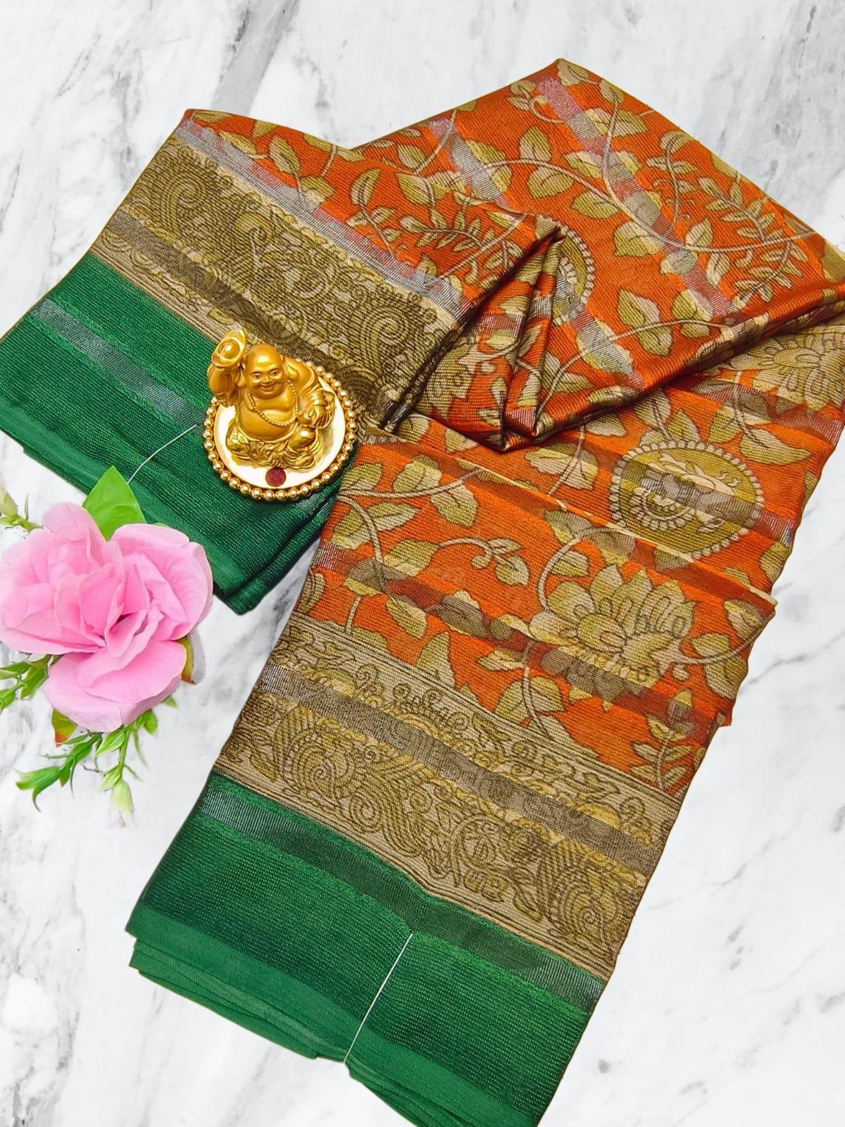Lightweight crystal silk saree with digital print and 3D effect. Stylish and budget-friendly.