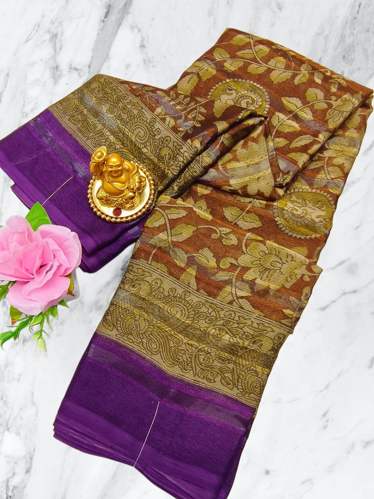 Lightweight crystal silk saree with digital print and 3D effect. Stylish and budget-friendly.