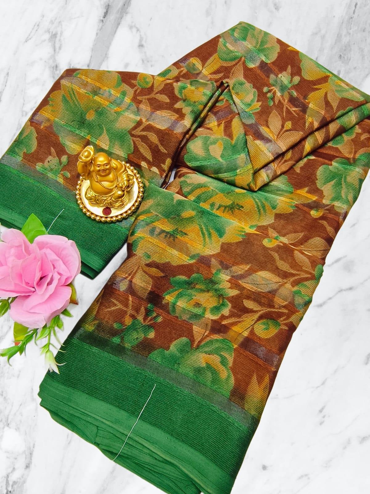 Lightweight crystal silk saree with digital print and 3D effect. Stylish and budget-friendly.