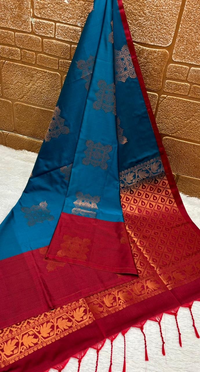 Elegant silk saree with contrast border and grand motif weaving. Lightweight and festive-ready.