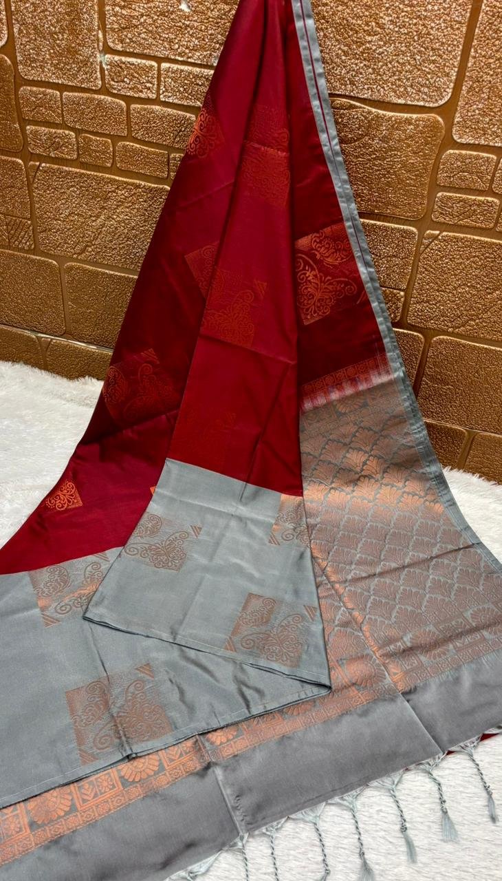 Elegant silk saree with contrast border and grand motif weaving. Lightweight and festive-ready.