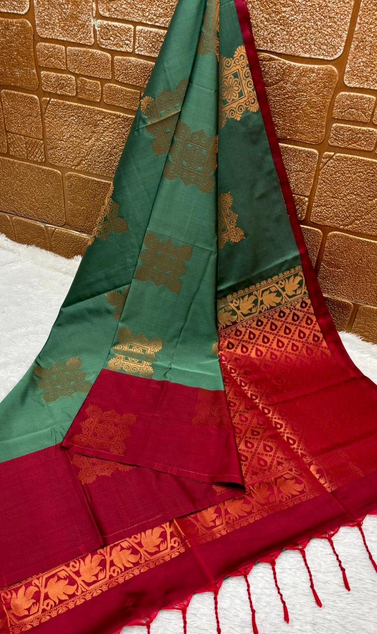 Elegant silk saree with contrast border and grand motif weaving. Lightweight and festive-ready.