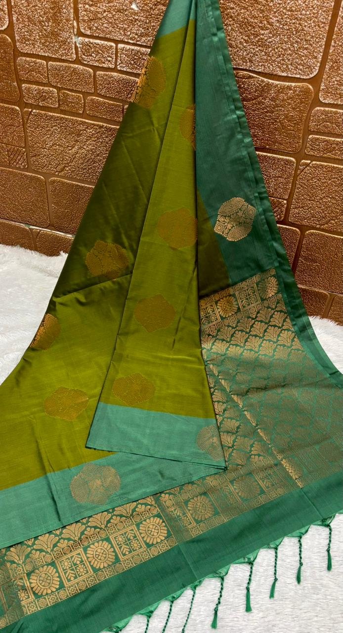 Elegant silk saree with contrast border and grand motif weaving. Lightweight and festive-ready.