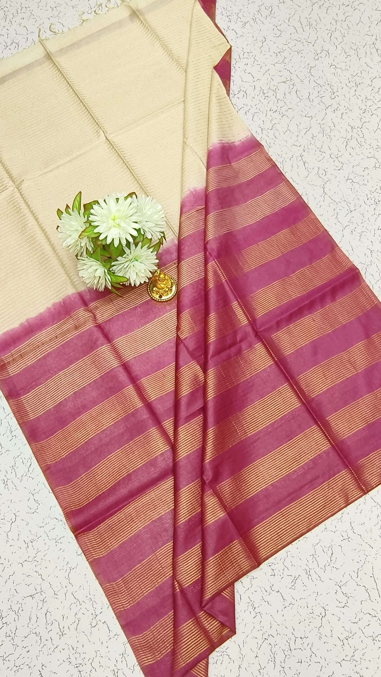 Premium Semi Tusser Soft Silk Saree with elegant thread work, zari border and contrast pallu. Perfect for festive and party wear.