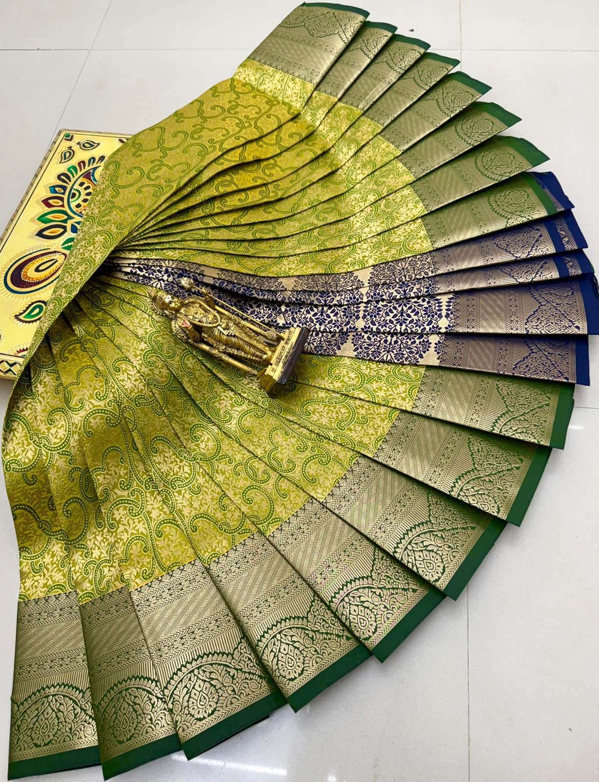 Bridal semi silk saree with triple shade glitter effect and jacquard design. Rich and elegant.