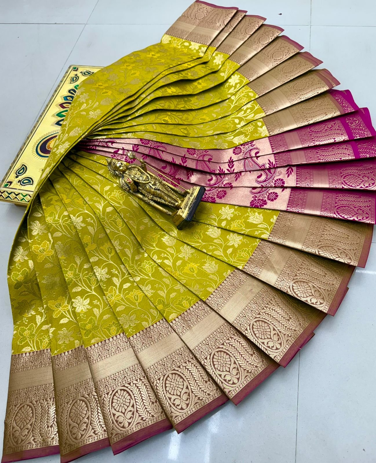 Bridal semi silk saree with triple shade glitter effect and jacquard design. Rich and elegant.