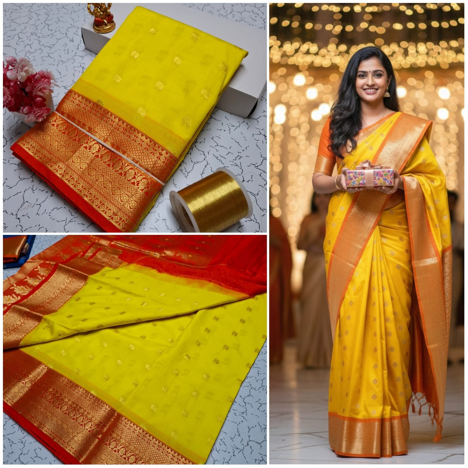 Premium Hand Korvai Soft Silk Saree with zari motifs and contrast pallu
