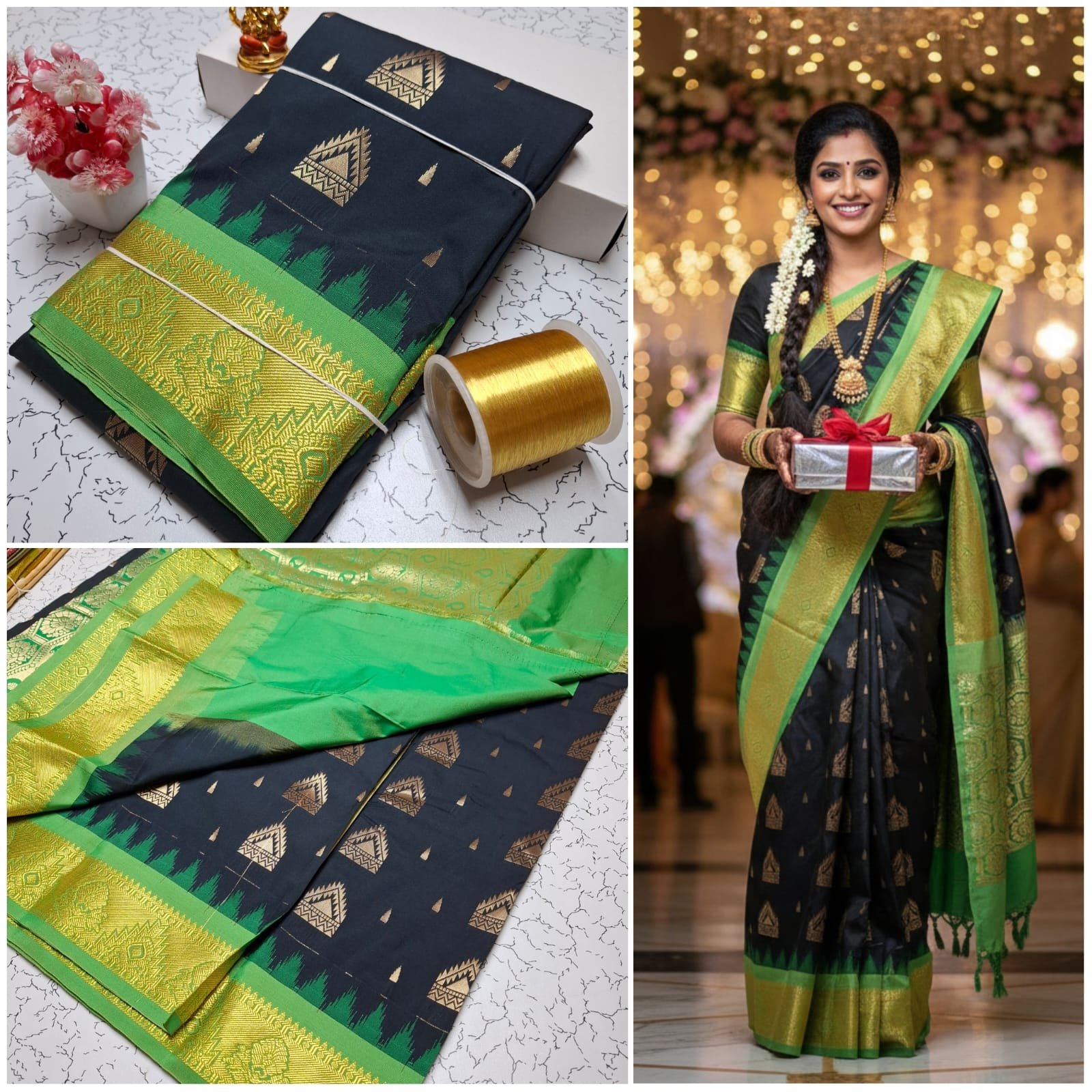 • Rich Contrast Pallu & Blouse