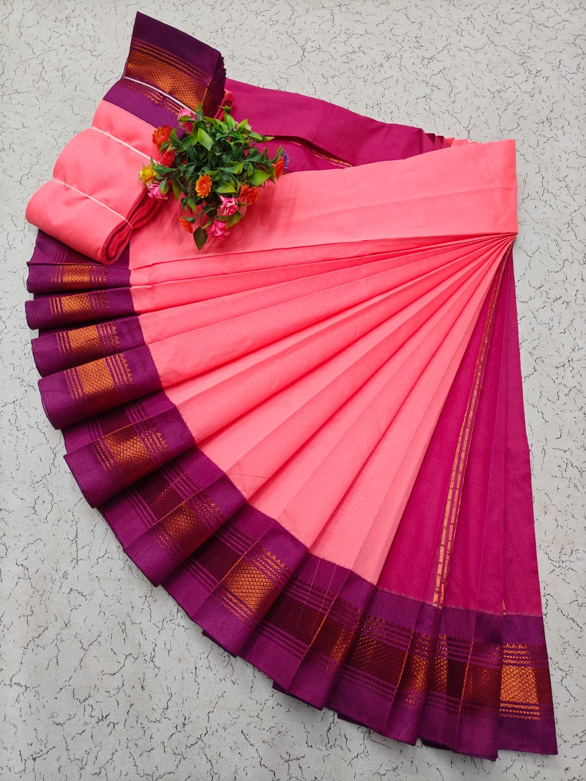Silk cotton saree with korvai border and contrast pallu. Soft and lightweight.