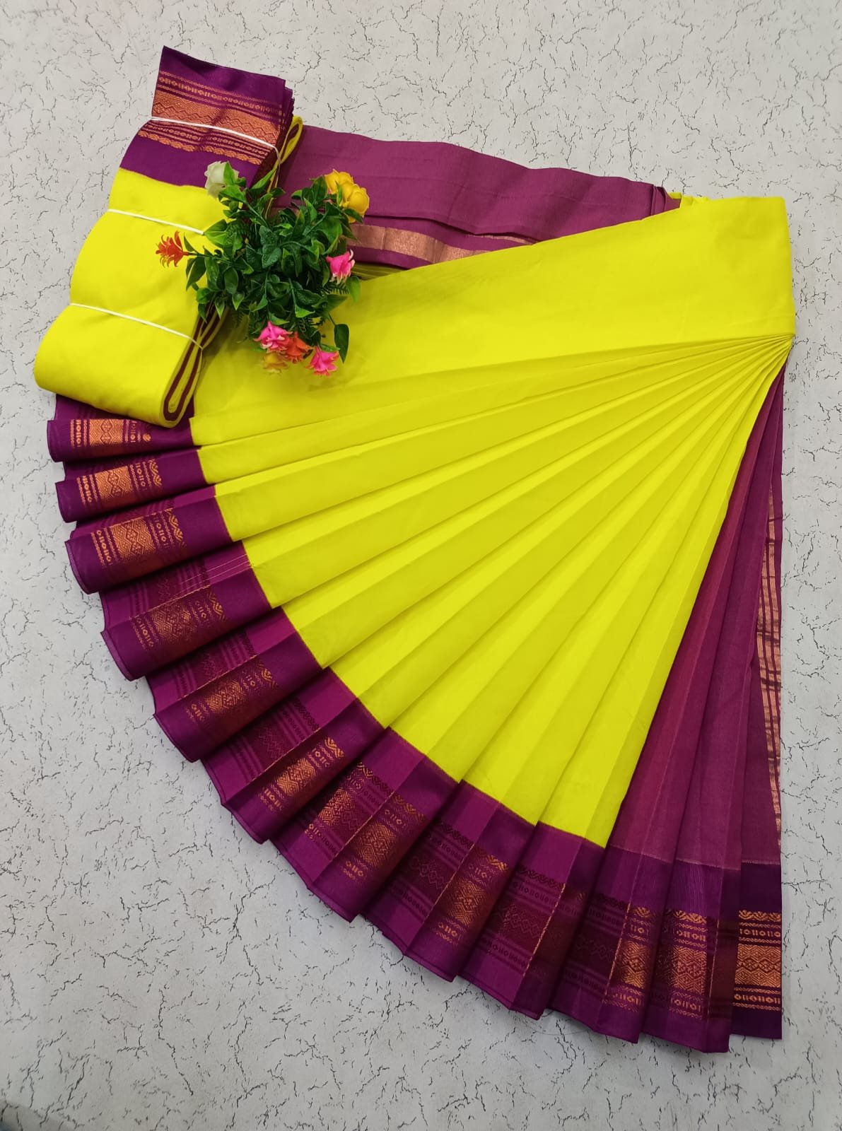 Silk cotton saree with korvai border and contrast pallu. Soft and lightweight.