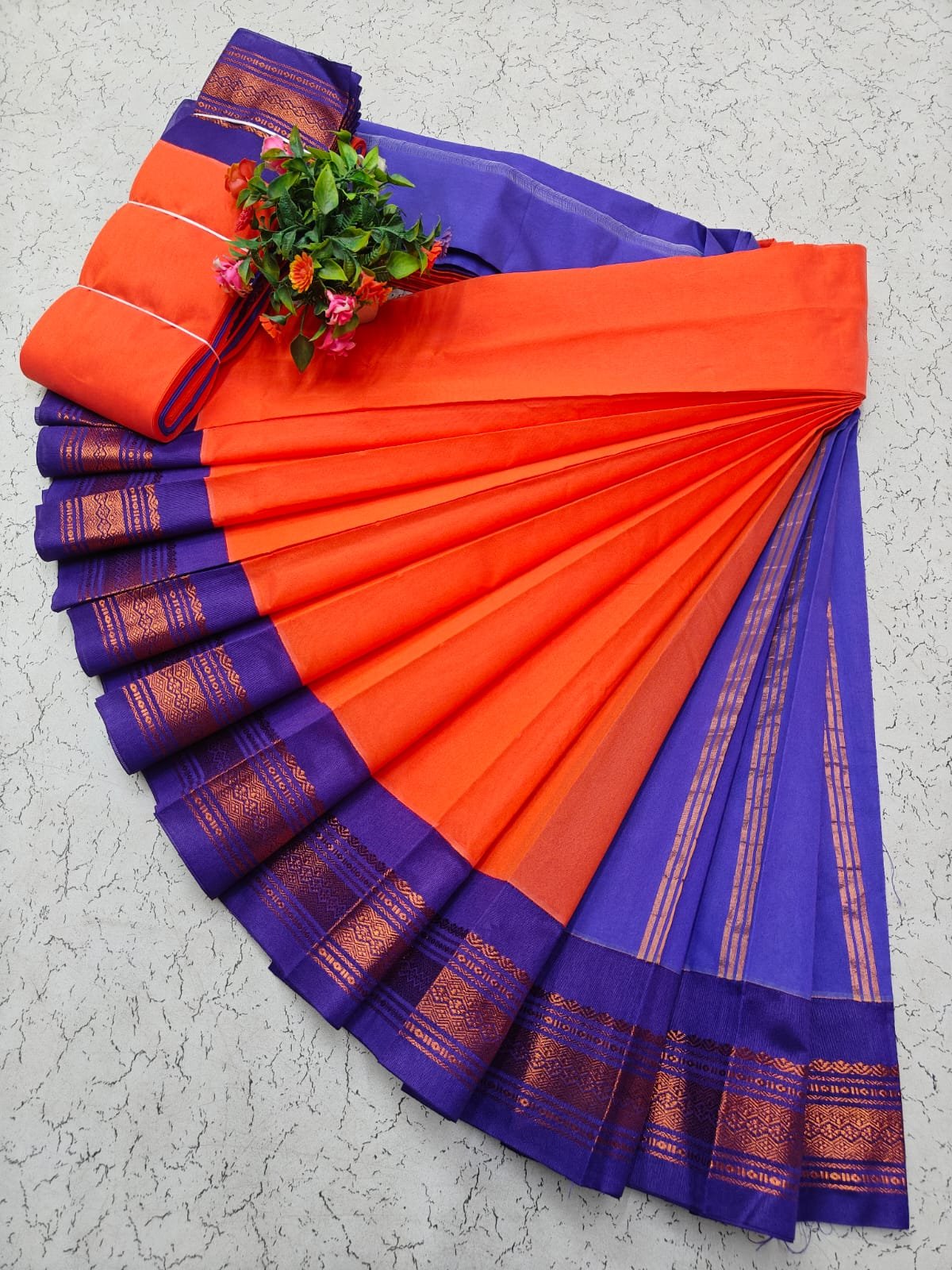 Silk cotton saree with korvai border and contrast pallu. Soft and lightweight.