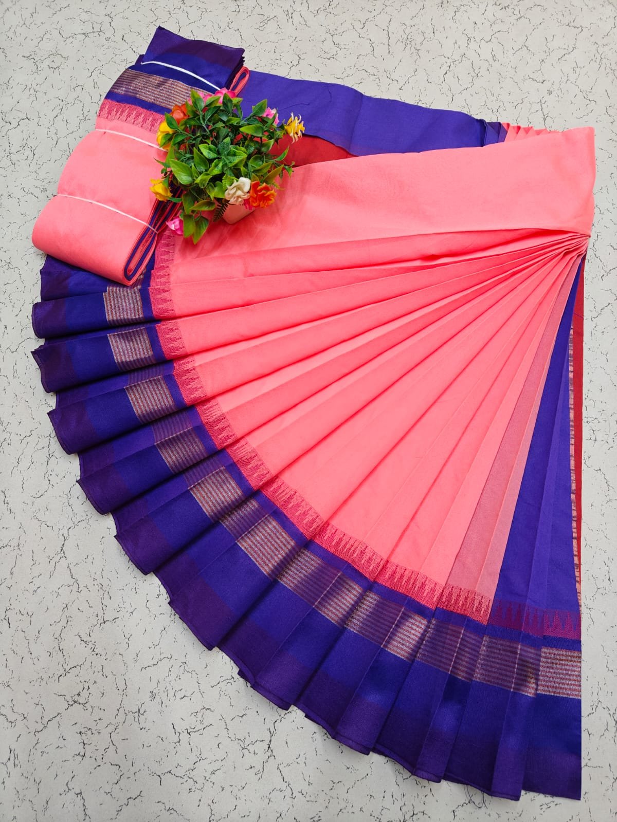 Silk cotton saree with korvai border and contrast pallu. Soft and lightweight.