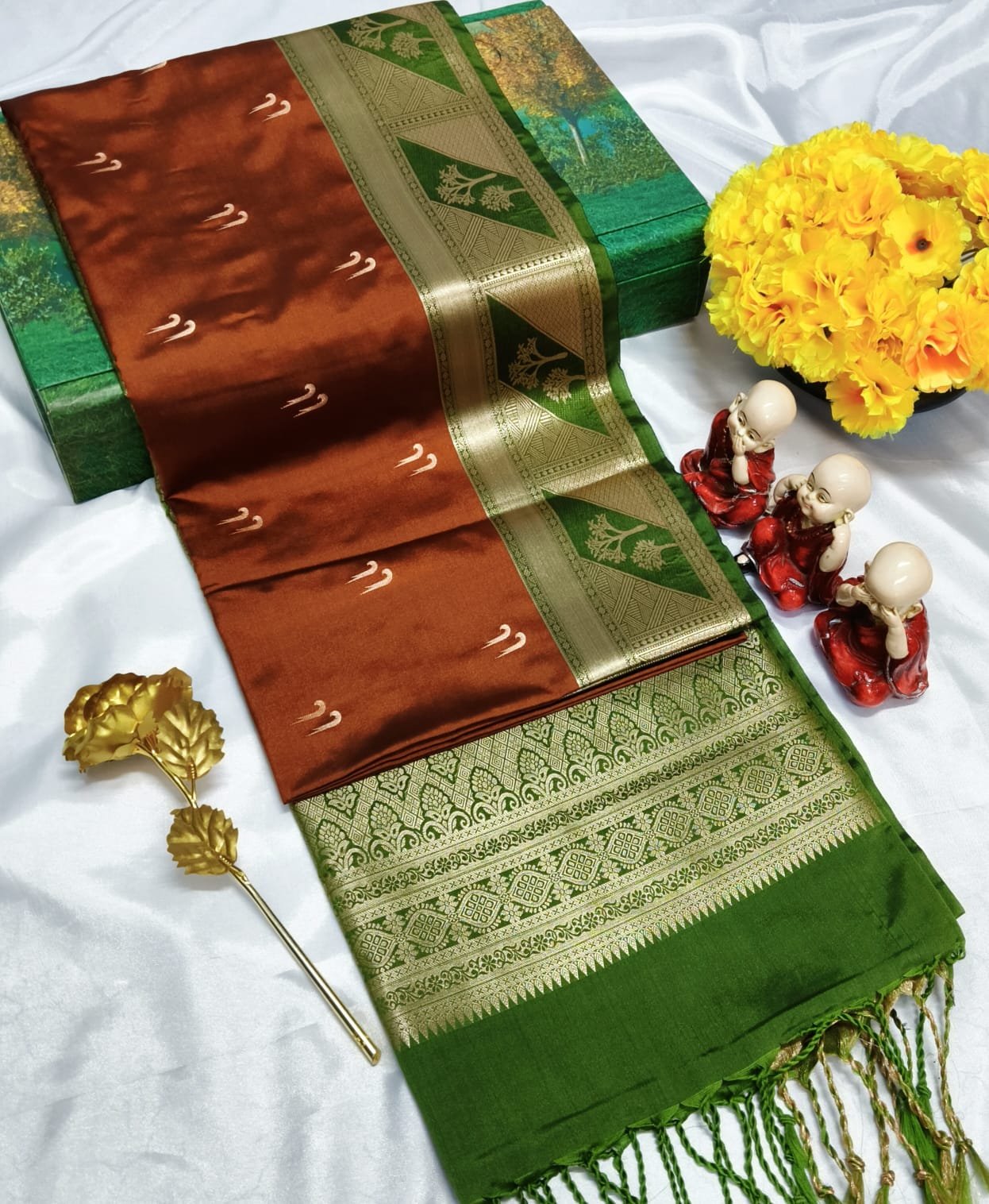 Premium soft silk saree with grand pallu and all-over fancy puttas. Rich, elegant, and perfect for occasions.