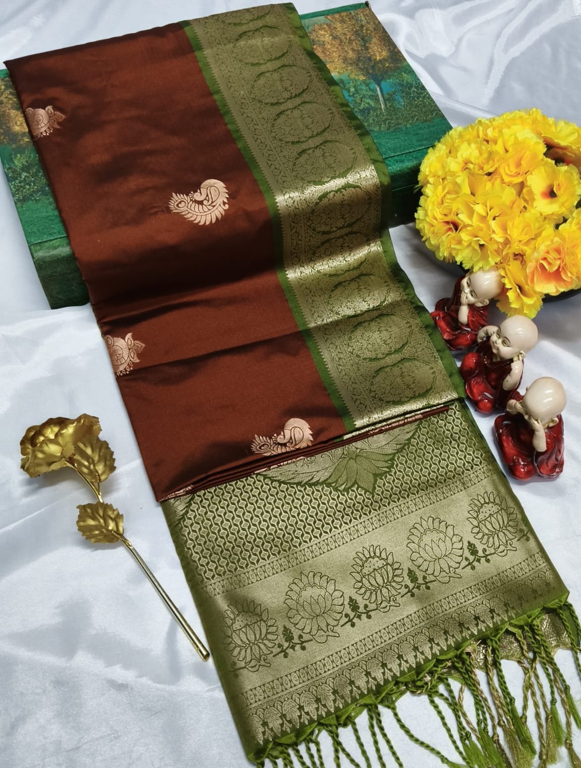 Premium soft silk saree with grand pallu and all-over fancy puttas. Rich, elegant, and perfect for occasions.