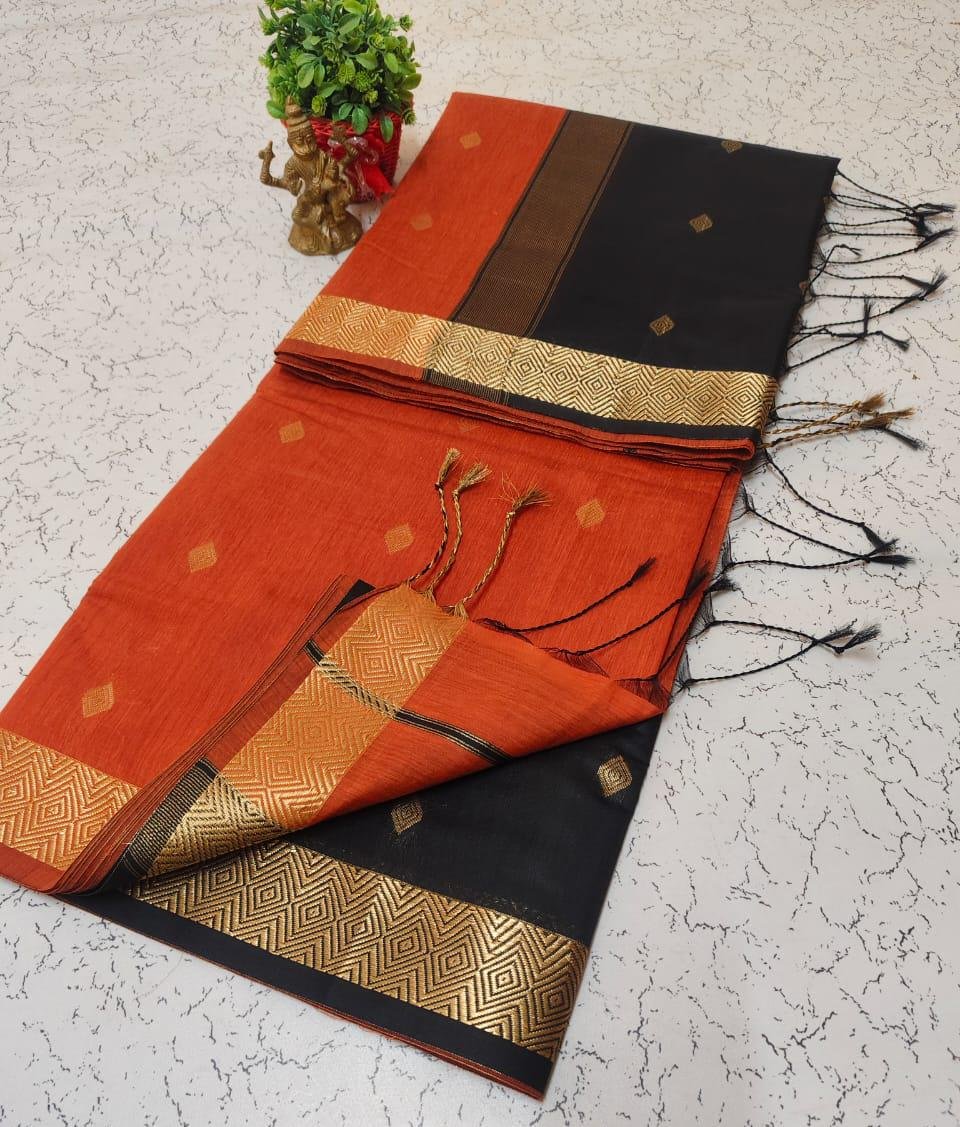 Maheswari silk cotton saree with Tasar zari diamond border. Lightweight and elegant.
