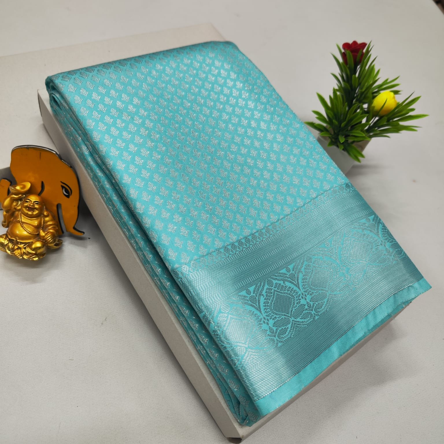 Premium soft silk brocade saree with rich zari pallu and Kanchipuram pattern. Ideal for festive and wedding wear.