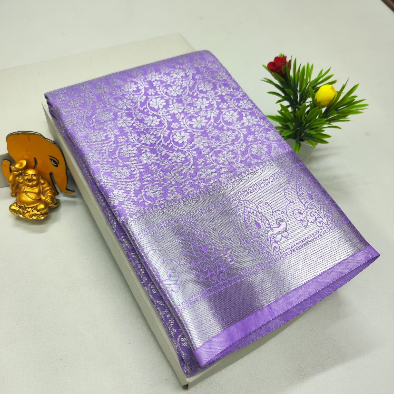 Premium soft silk brocade saree with rich zari pallu and Kanchipuram pattern. Ideal for festive and wedding wear.