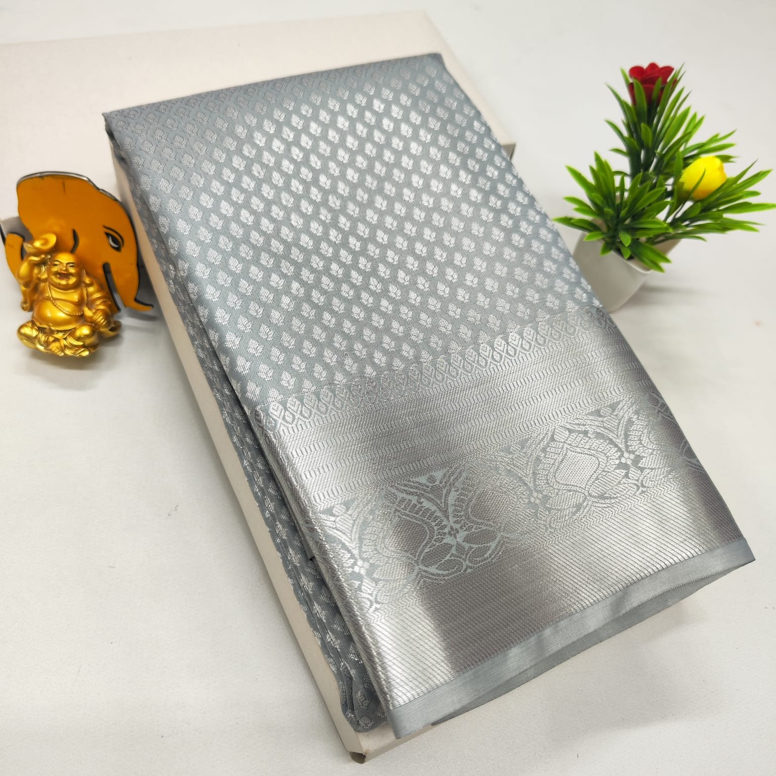 Premium soft silk brocade saree with rich zari pallu and Kanchipuram pattern. Ideal for festive and wedding wear.
