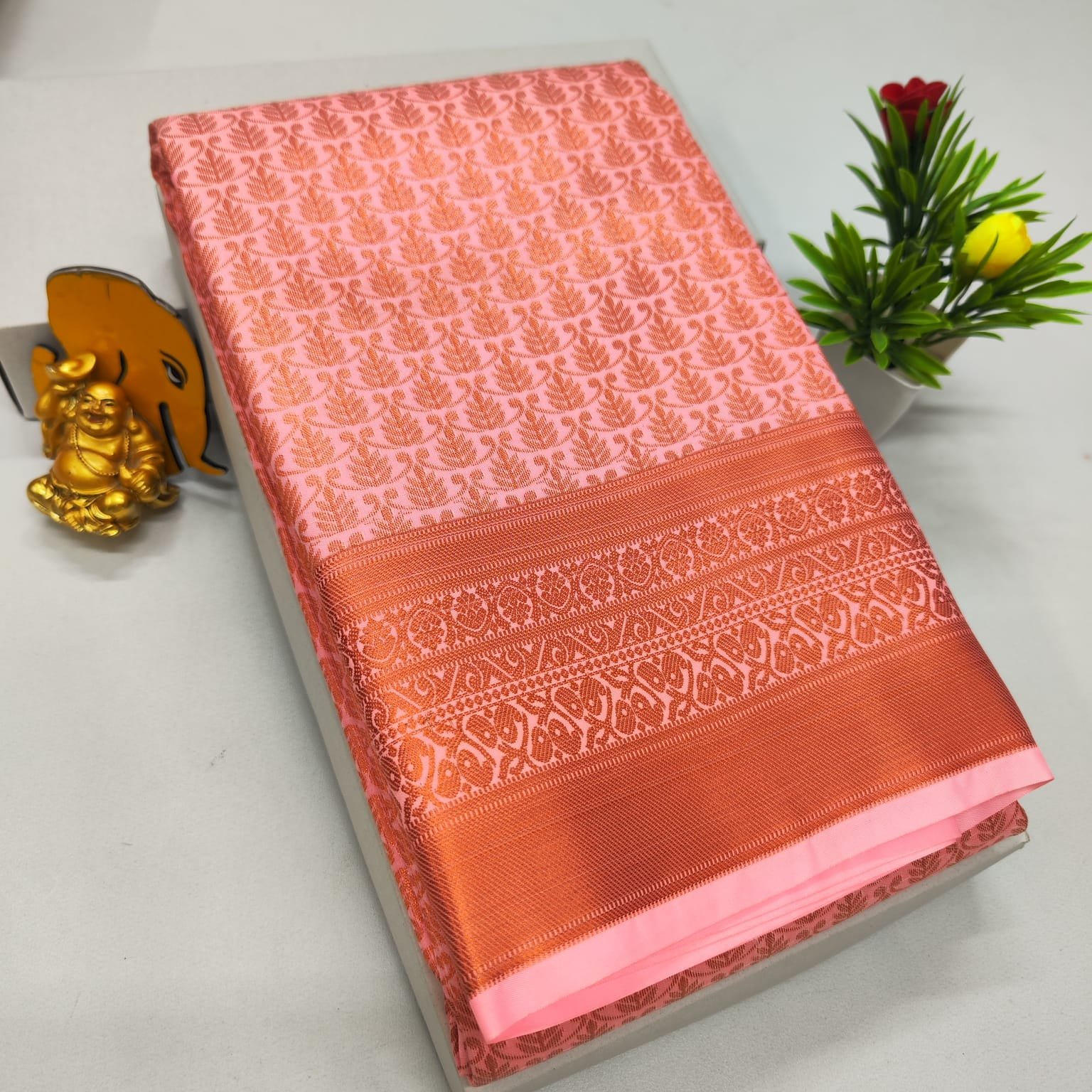 Premium soft silk brocade saree with rich zari pallu and Kanchipuram pattern. Ideal for festive and wedding wear.