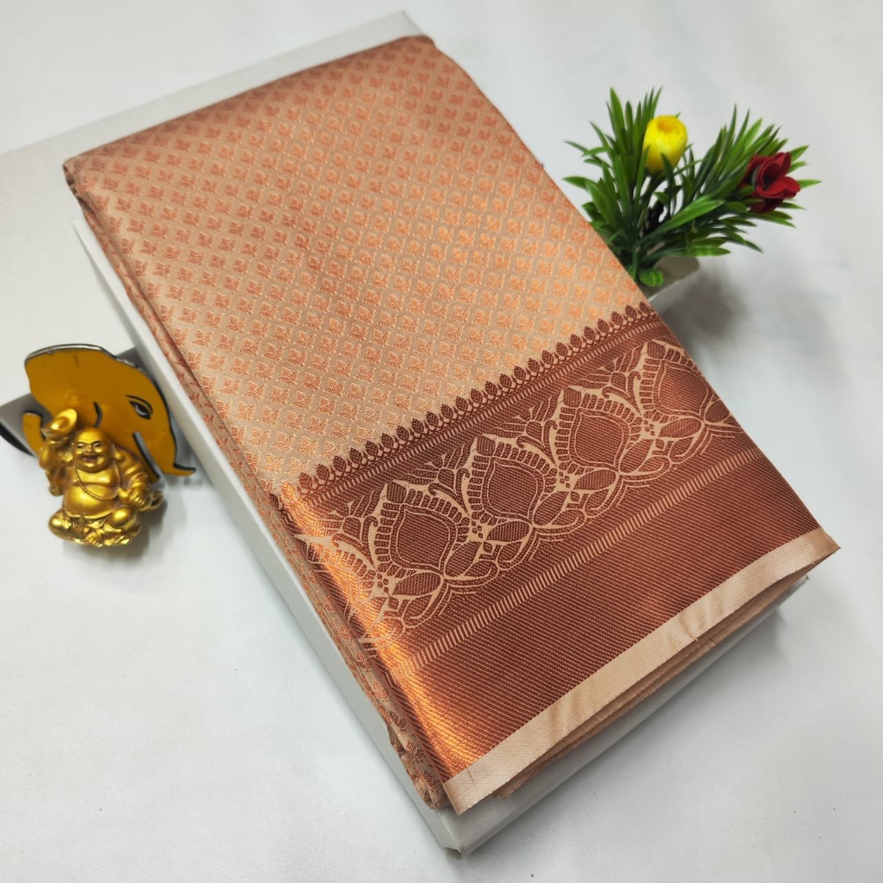 Premium soft silk brocade saree with rich zari pallu and Kanchipuram pattern. Ideal for festive and wedding wear.