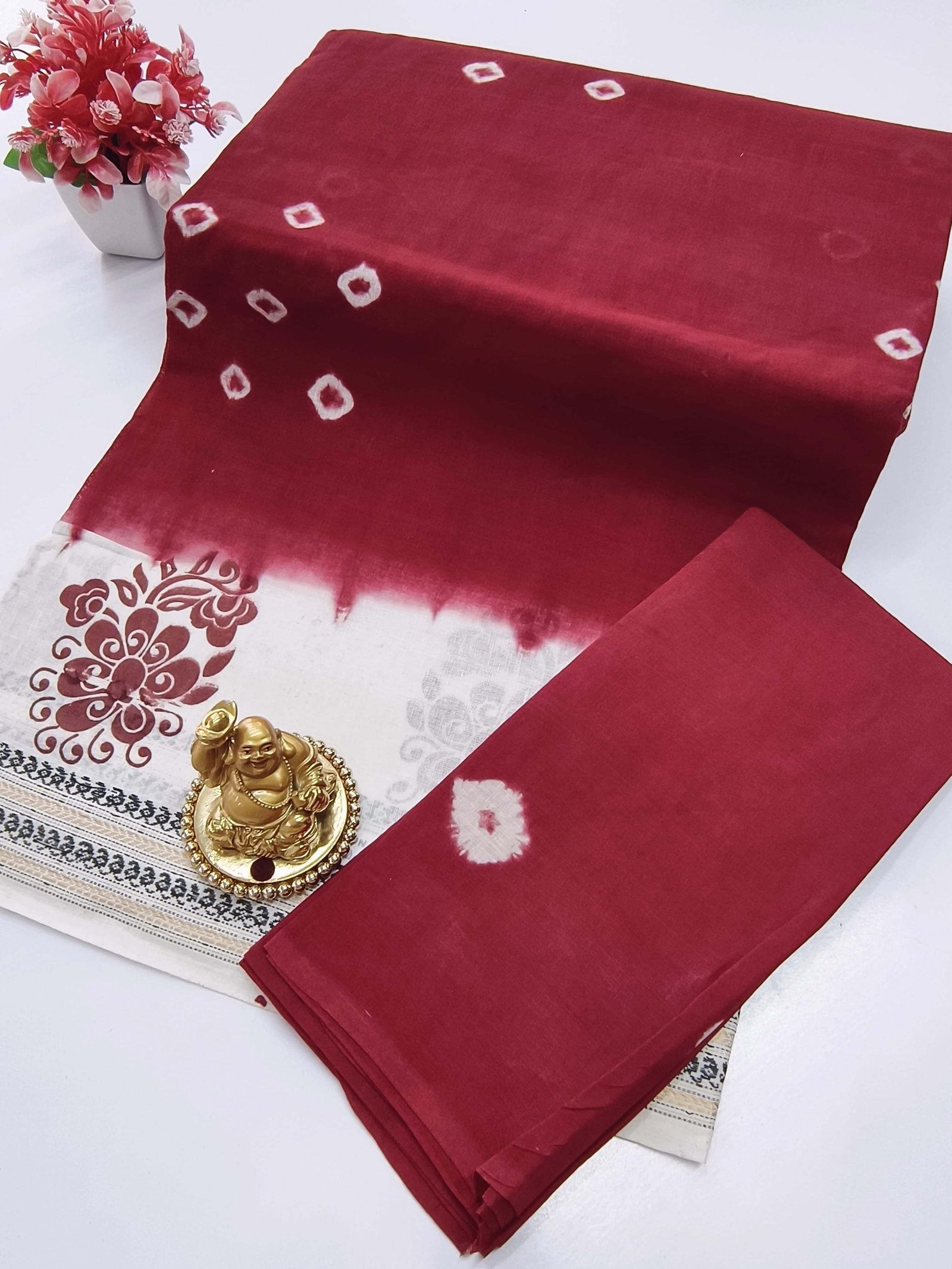 Lightweight Baandhani cotton saree for summer & daily wear