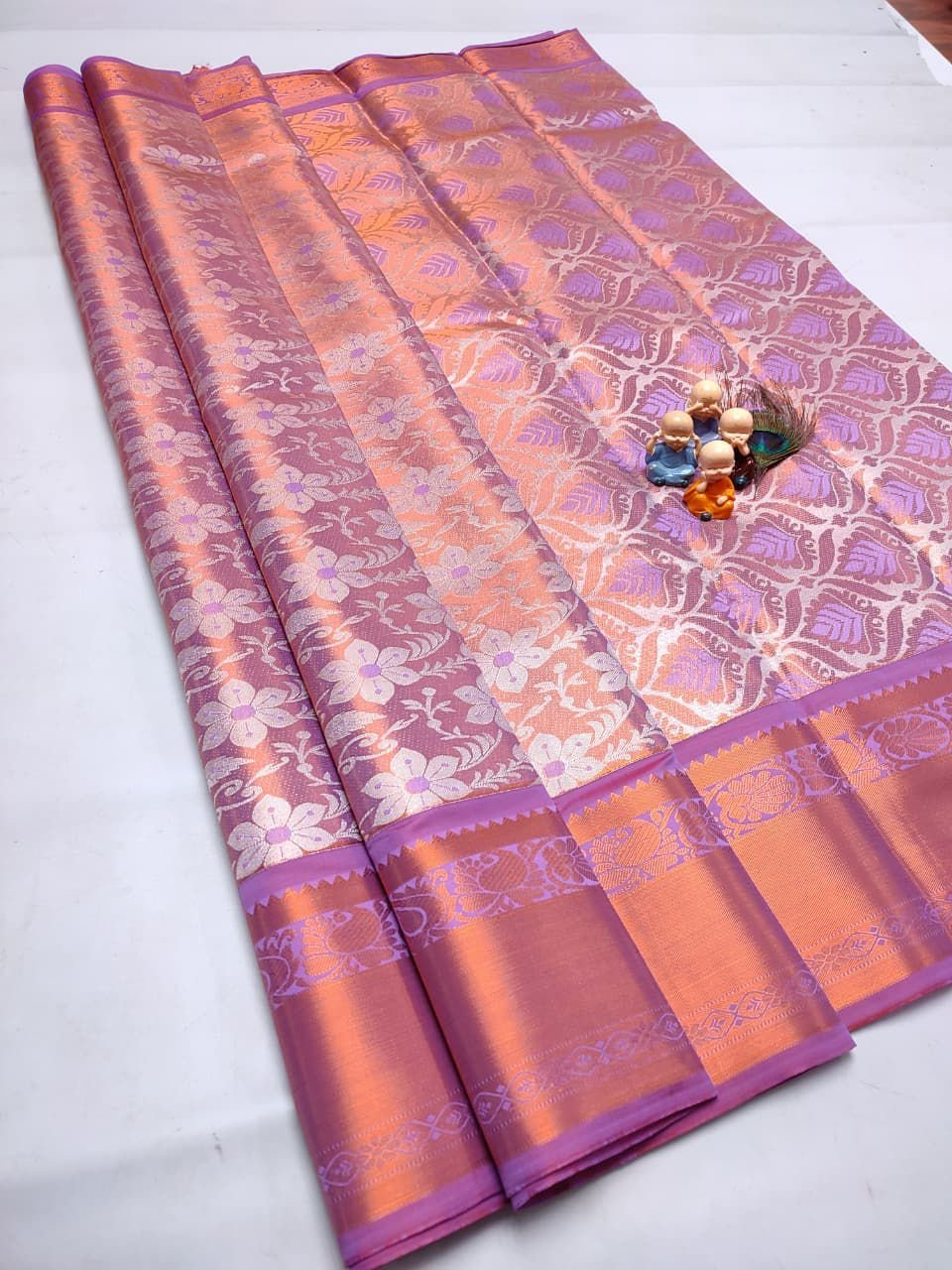 Grand tissue silk saree with Kanchipuram brocade and rich zari pallu. Perfect for bridal and festive wear.